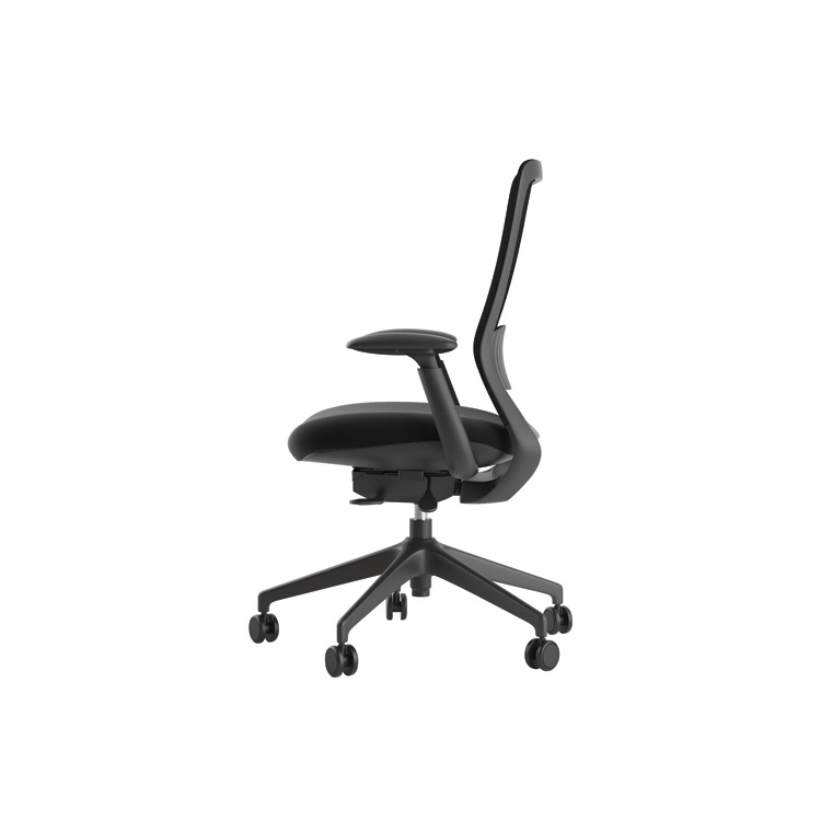 - Upholstered, high-density moulded foam fabric seat & wipeable mesh back
